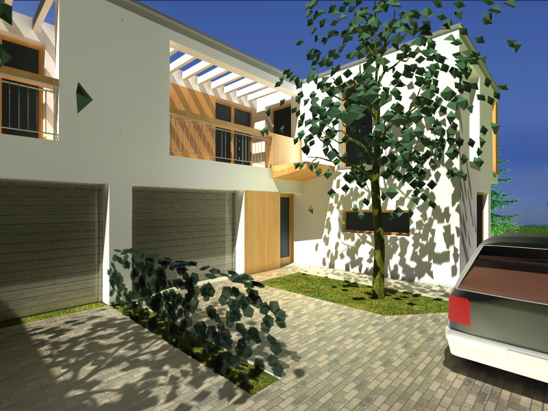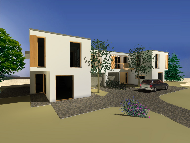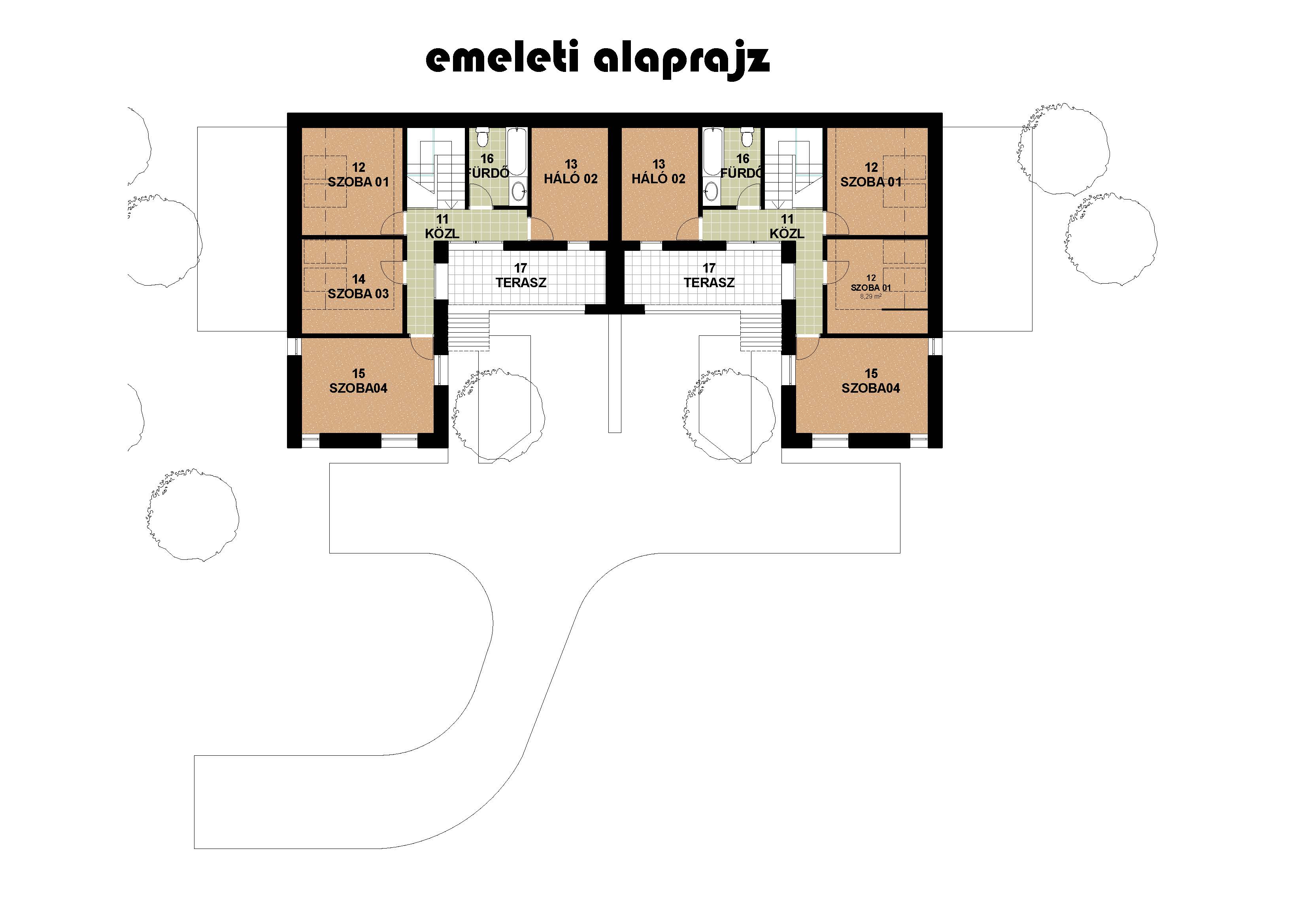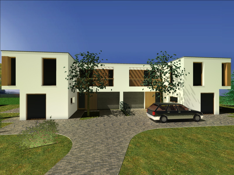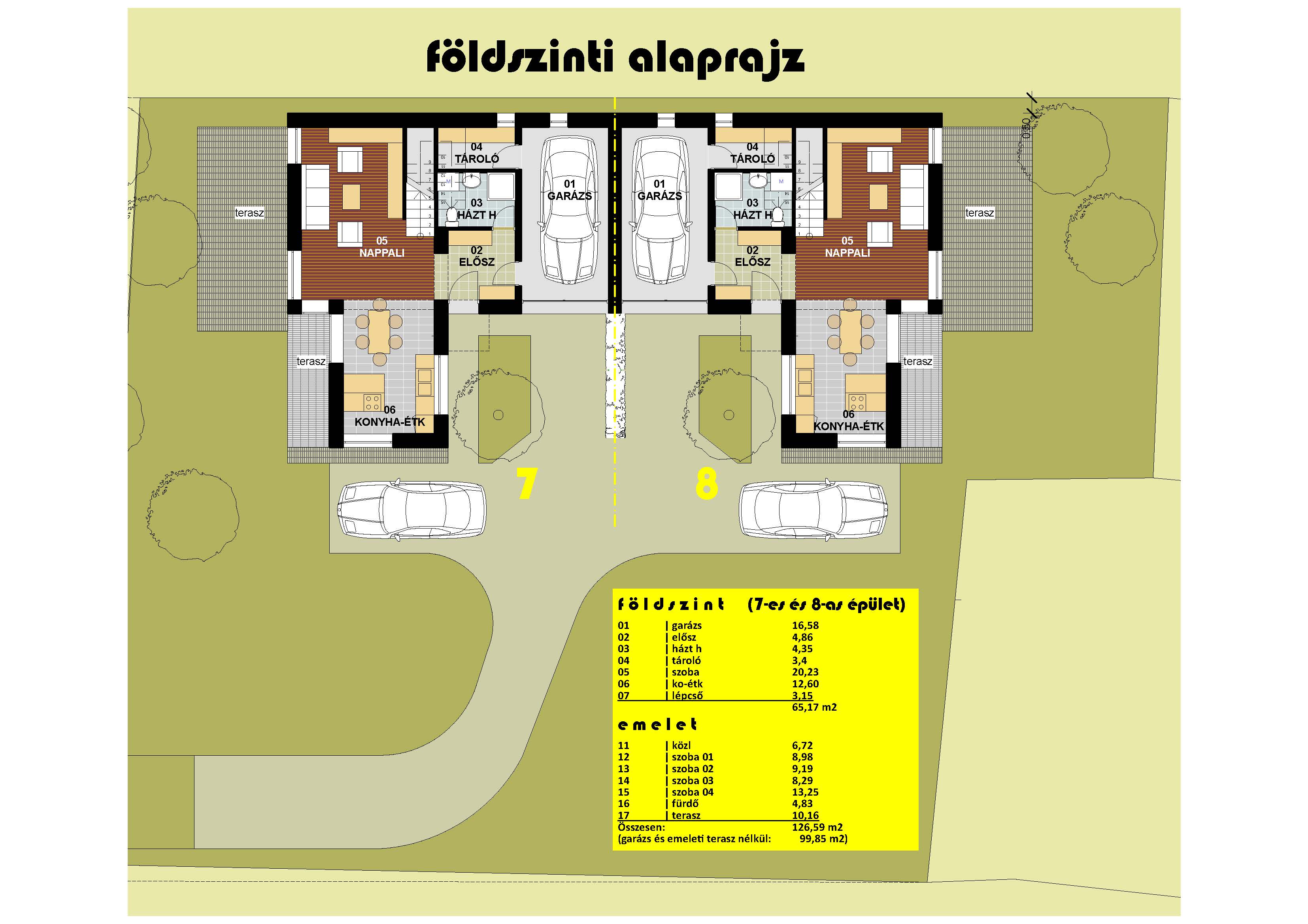 126 m2-es, 4 szobás, 2 fürdőszobás, kétszintes ikerház garázzsal.